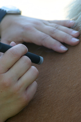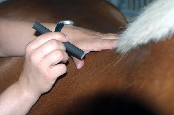 Es werden die Akupunkturpunkte mit einer glimmenden Moxazigarre (Wirkstoff ist das Beifußkraut) erwärmt. Die erzeugte Wärme dringt mild und zugleich tief in das Gewebe des Pferdes ein.